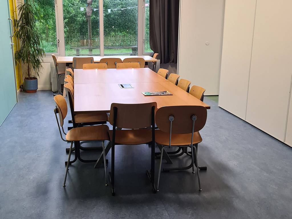 Deze ruimte kan gehuurd worden voor groepen van ca. 20 personen. De ruimte kan worden samengevoegd met ruimte 0.06 waardoor deze voor ca. 50 personen gebruikt kan worden. De totale ruimte is dan 100m2. Het gebruik van de buitenruimte die grenst aan het jeugdhonk, is inbegrepen.